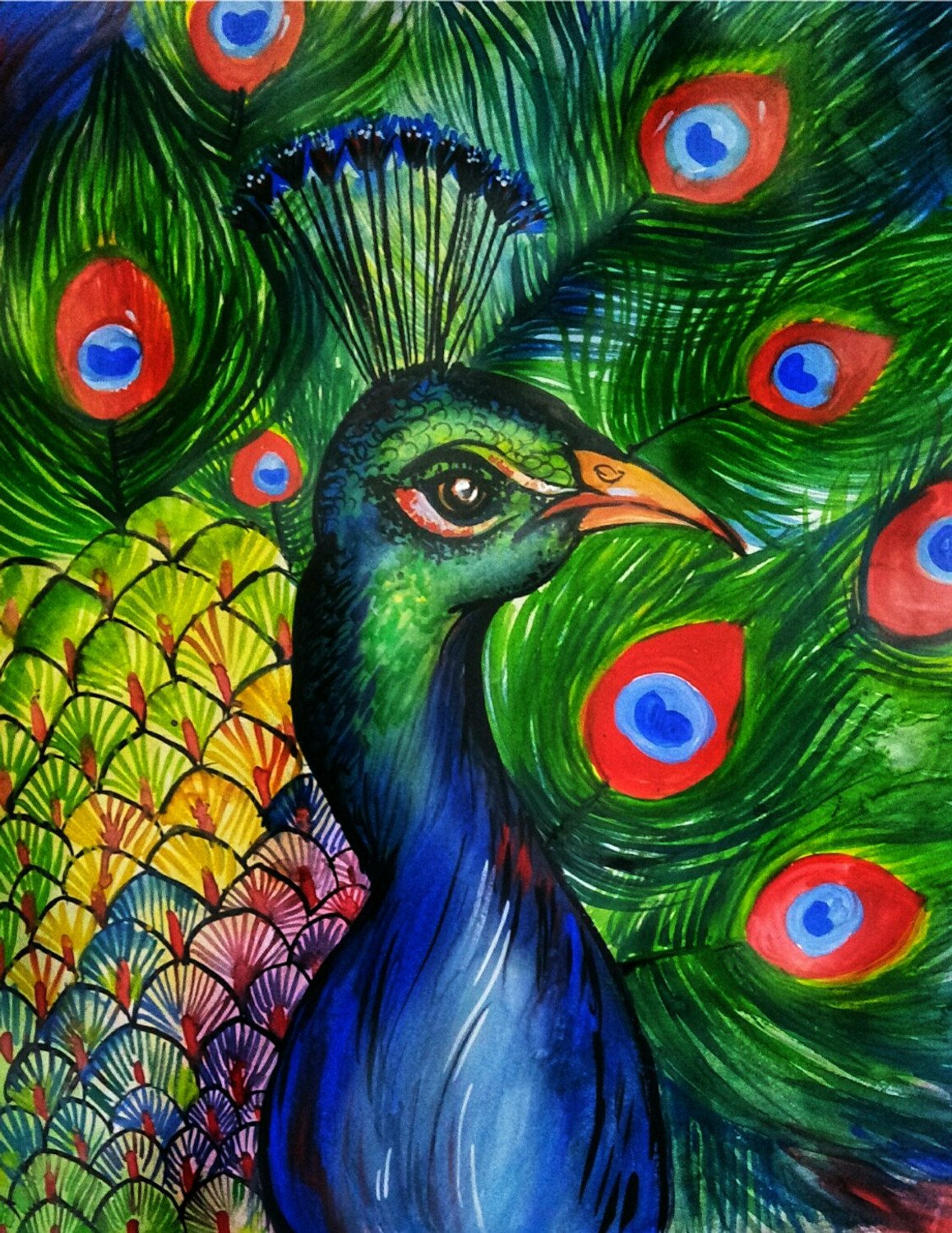 A living jewel. This portrait captures the peacock's iridescent spectacle, where emerald, sapphire, and gold feathers fuse into a thousand watchful eyes.